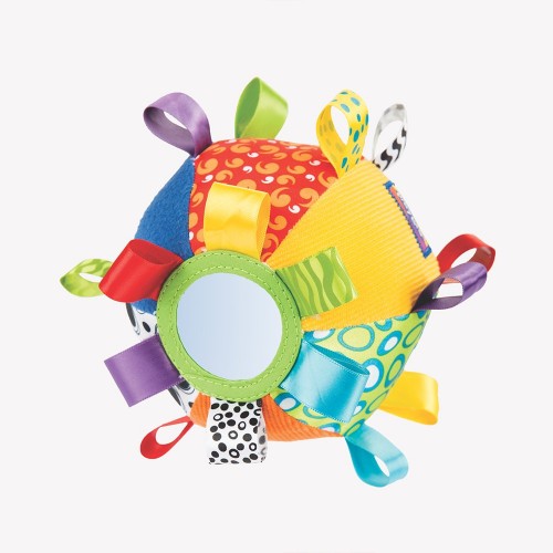 - Топката издава дрънкащи звуци при завъртане за слухова стимулация