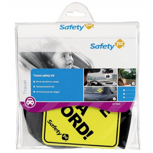 Комплектът включва табелка "Бебе в колата", огледало за наблюдение на детето и два сенника с UV защита.