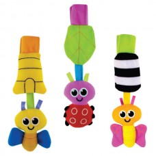 - Играчките издават различни звуци, които насърчават бебето да върти главичка и да ги търси и могат лесно да бъдат закачени на кошарката, количката, столчето за кола и където пожелаете, благодарение на системата за лесно закачане.