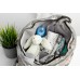 - Чантата е оборудвана с раменни колани, един дълъг колан и две дръжки, които ви позволяват да прикрепите чантата към дръжката на количката