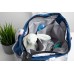 - Чантата е оборудвана с раменни колани, един дълъг колан и две дръжки, които ви позволяват да прикрепите чантата към дръжката на количката