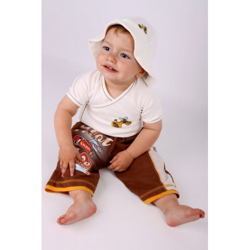 Лятната шапка с периферия Shushulka Baby с весел дизайн е мека и удобна, и е изработена от 100% сертифициран органичен памук.Изключително лека и от дишаща материя, тя няма да претопли детето ви и през лятото, а светлият натурален цвят допълнително предпазва от слънцето.
