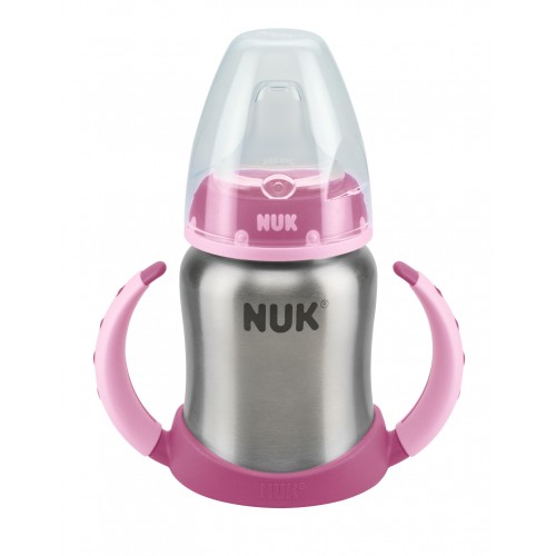 NUK шише 150мл от неръждаема стомана със силиконов неразливащ се накрайник.Характеристики: