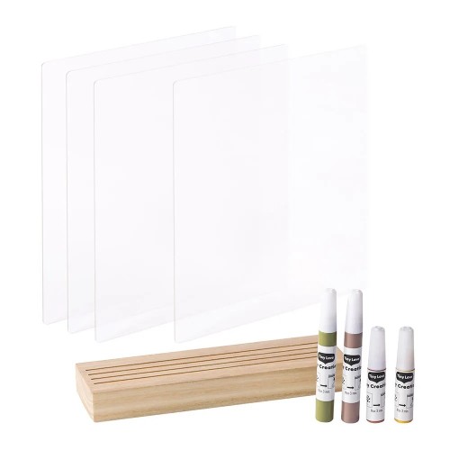- Комплектът включва всички, необходимо за изработването на отпечатъци: 4 бр. панели за отпечатък, 4 бр. боички в различни цветове, 1 бр. красива дървена стойка