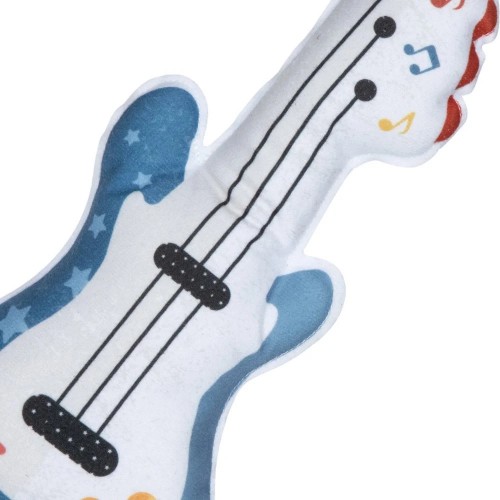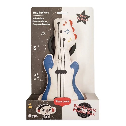 Меката текстилна играчка Китара от серията Tiny Rockers с музикална кутия с 5 оригинални рокендрол мелодии, които бебето да активира чрез потупване. Има ринг универсален ринг за закачане, така че да е навсякъде с вас.