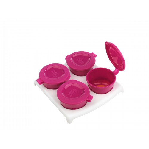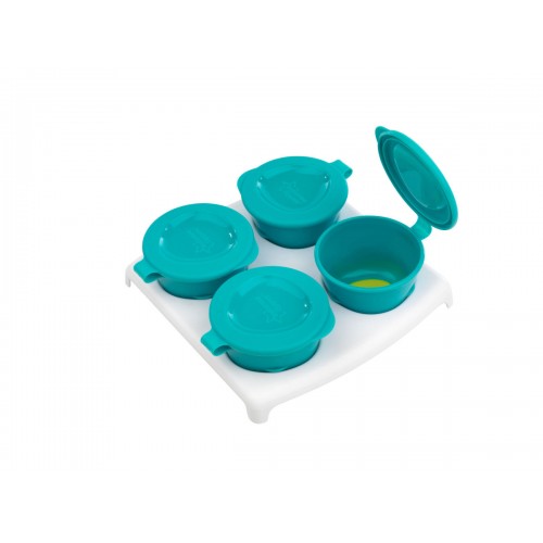 За ваше удобство, контейнерите могат да се подреждат един върху друг, както и на поставката. Подходящи са за разделяне на първите храни. Можете за замразите оставащите храни във фризер за по- късно.
