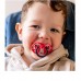 Залъгалките са със симетричен силиконов биберон, който подкрепя здравословното и естествено развитие на устата, зъбите и венците на бебето. Извитият щит има с големи отвори от двете страни, които позволяват допълнителен въздушен поток. По-добрата циркулация на въздуха предотвратява натрупването на влага и по този начин помага да се предпази нежната бебешка кожа.