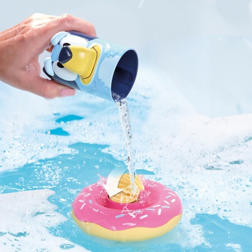 - Състои се от две части: кръгла, плуваща основа с водно колело и чаша за изливане с кучето Bluey отвори, идеална за малките детски ръчички