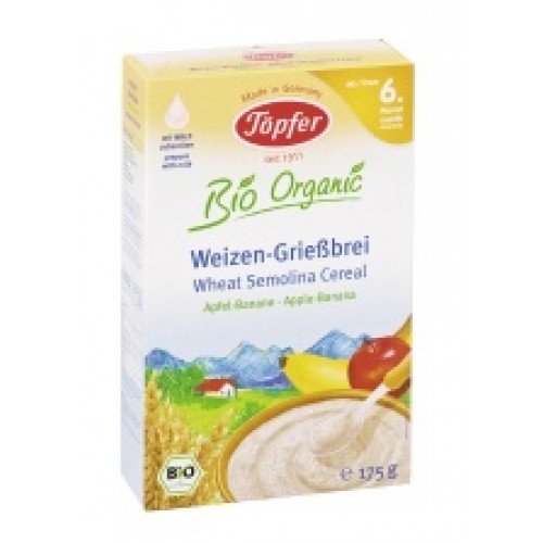 Töpfer БИО безмлечна каша Lactana® с пшеничен грис,ябълка и банан - 6 месеца +