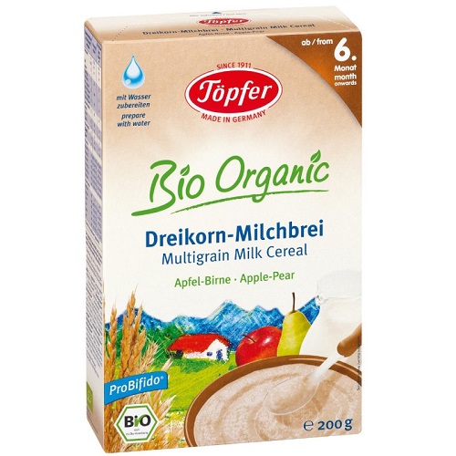 Topfer Био млечна каша Lactana® с три вида зърна, ябълка и круша - 6 месеца +