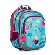 Страхотен дизайн с пухкава висулка за принцеси от 1 до 4-5 клас. Раницата е с олекотена конструкция, две отделения и голям преден джоб. Двете основни отделения са с различен обем, задното е по-широко и обемисто за по-голям брой учебници, подходящо и за лаптоп. Предният джоб е подходящ за съхранение на несесер, кутия за храна или други дребни вещи и помагала. В него ще намерите и карабинер за закачване на ключове. Новото в този модел са и страничните джобове за шише. Има специални ремъци за закачване на торбичката за спортни обувки от двете страни. Раницата е с анатомично оформен гръб, широки, ергономични презрамки, които се регулират както отдолу, така и отгоре за максимално удобство според ръста и структурата на детето. Раницата се допълва от множество светлоотразителни елементи за по-голяма безопасност на децата при всякакви метеорологични условия, пластмасова дръжка за носене в ръка и дръжка за закачване. Дъното на чантата е изработено от специален, патентован, непропусклив материал ( TOPDURA - тестван в Института за тестване и сертифициране в Злин), оборудвана е с пластмасови крачета и долните ръбове на чантата са допълнително подсилени.Характеристики: