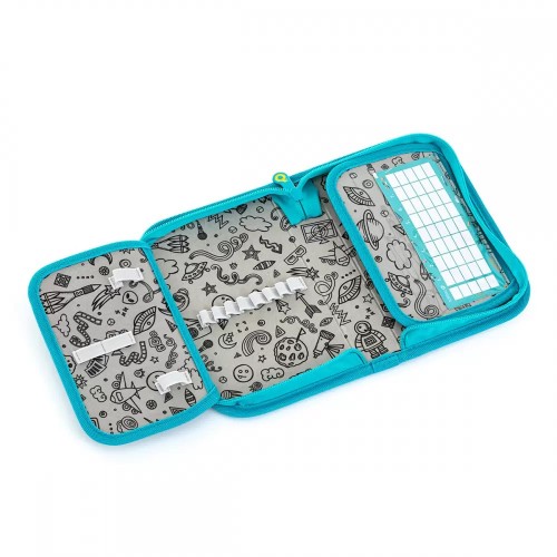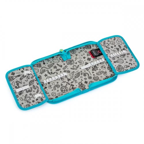 - 21 броя ластичета за организиране на моливи и флумастери, и 3 по-широки за линия, гума, острилка иli ножица