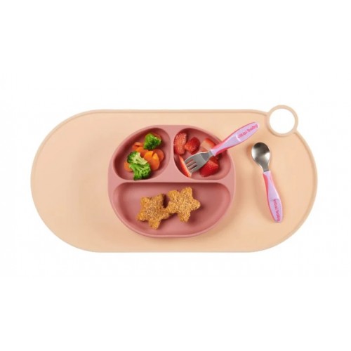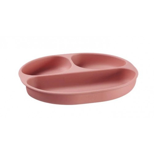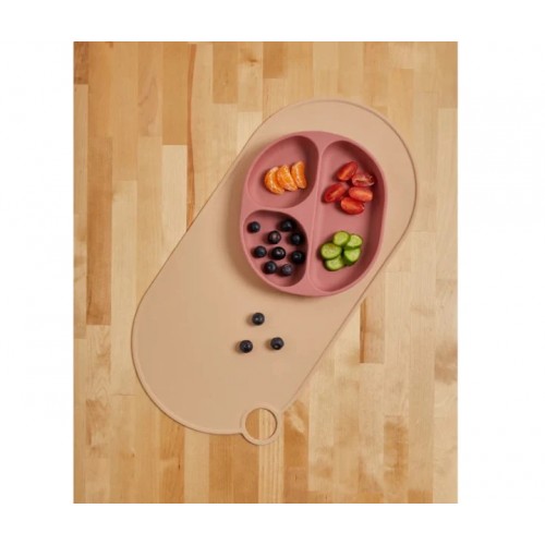 Чинията е изработена от мек силикон със заоблени ръбове и има вакуумна основа, която се захваща здраво за масата или таблата за хранене. Вътрешната час е с няколко разделения, за да могат различните видове храни да си имат свое място, като по този начин се насърчава любопитството и интереса на децата към самостоятелното хранене.Характеристики: