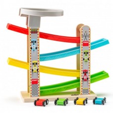 Woody Дървена писта с 4 колички и платформа