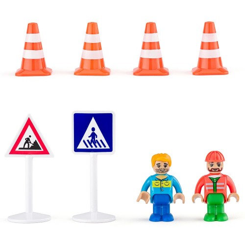 - Две фигурки, с които детето ще може да се забавлява както с превозните средства, така и потделно