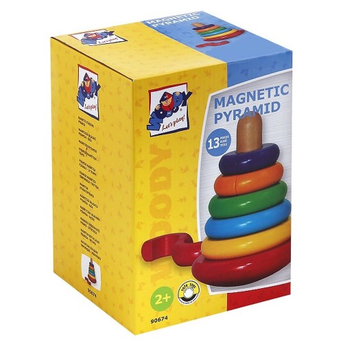 Забавна пирамида с цветни пръстени с различна големина и цвят, разделени на две равни части и съединени с магнити.Характеристики:
